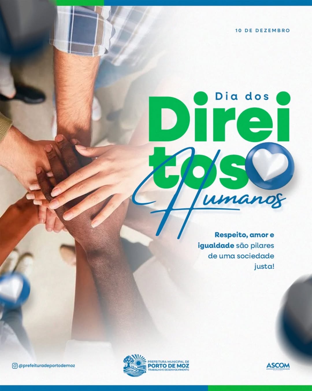 Hoje celebramos o Dia Internacional dos Direitos Humanos, data que marca a adoção da Declaração Universal dos Direitos Humanos pela ONU. Este é um momento para reafirmar nosso compromisso com a dignidade, a igualdade e o respeito a todas as pessoas. Seguimos trabalhando para promover ambientes mais justos, inclusivos e seguros, fortalecendo a defesa dos direitos fundamentais que pertencem a cada ser humano.
