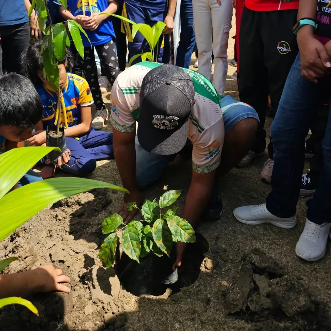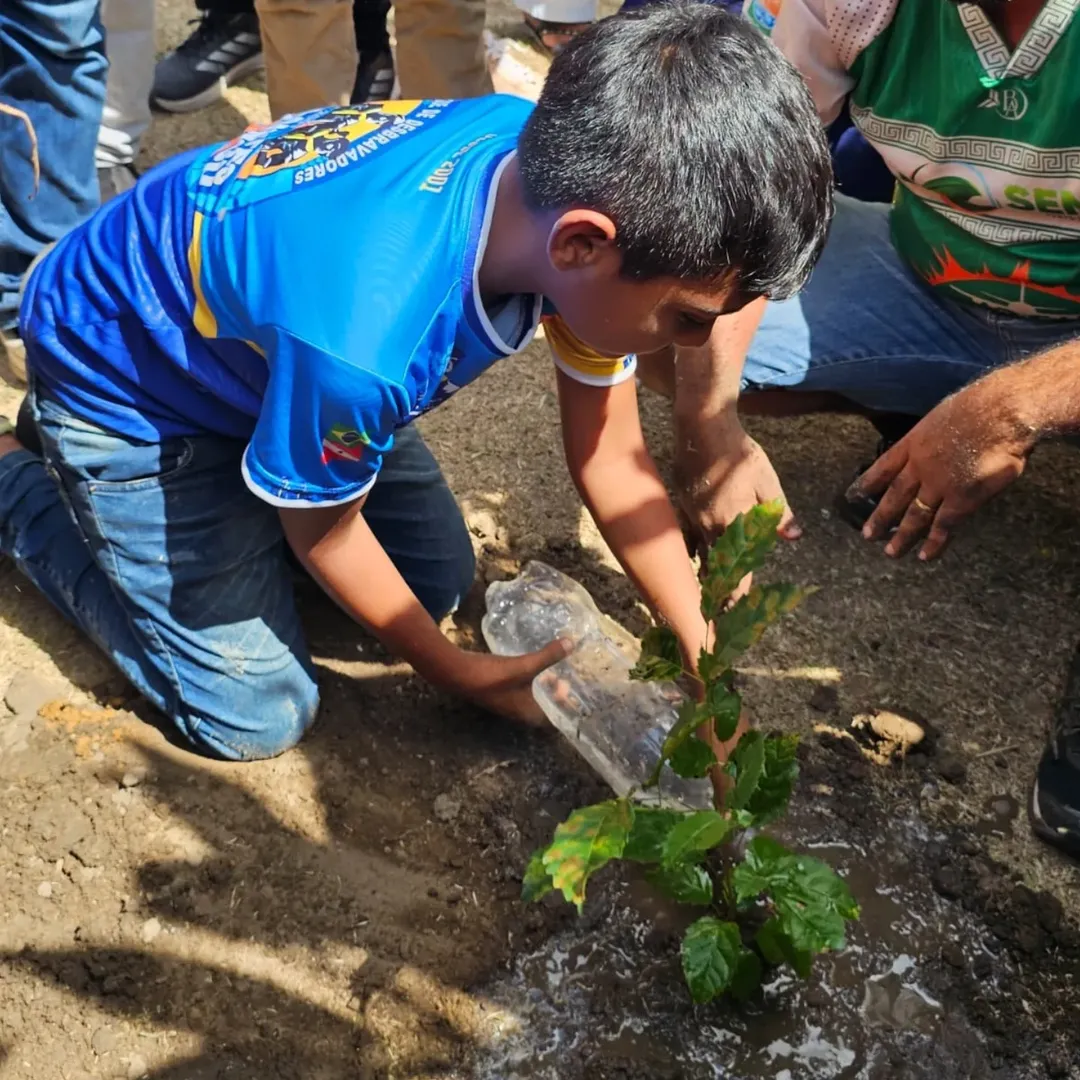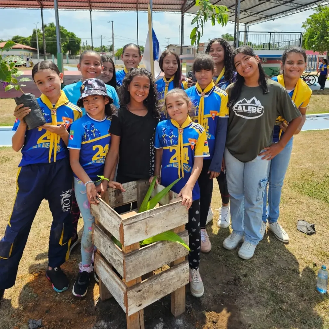 20 novas árvores foram plantadas pelas crianças na Praça da Bíblia. Elas aprenderam que plantar é o primeiro passo, mas que cuidar, regar e adubar é a chave para a vida e para o combate às mudanças climáticas.