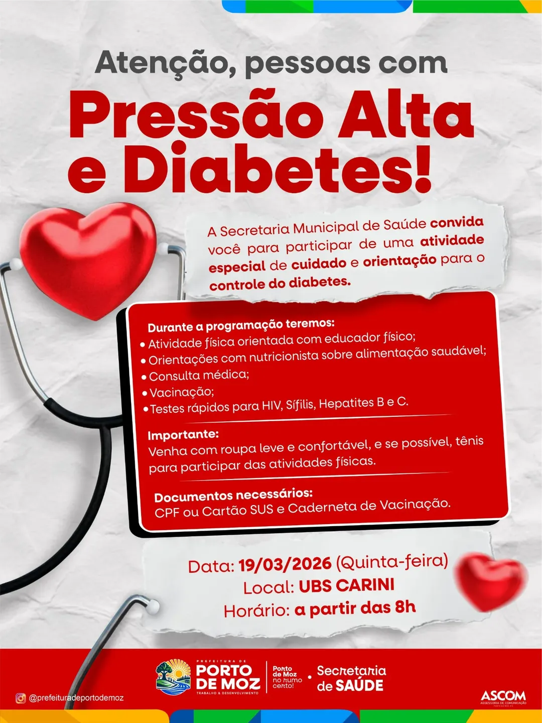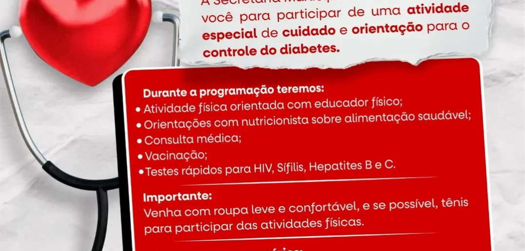 A Secretaria Municipal de Saúde de Porto de Moz convida você para participar de uma atividade especial de cuidado e orientação para sua saúde.