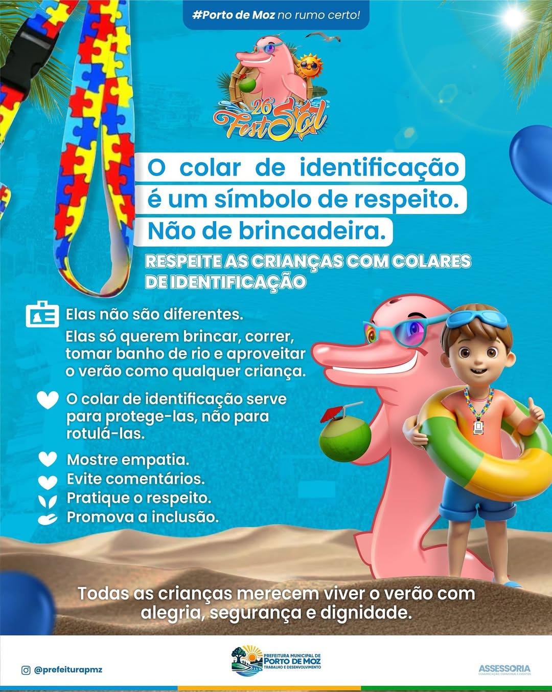 No FestSol, algumas crianças usam colares coloridos para garantir mais segurança durante a festa. Eles não servem para rotular, mas para proteger.