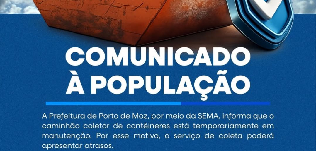 Contamos com a colaboração da população portomozense. Em breve, o serviço será normalizado.