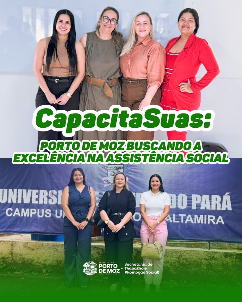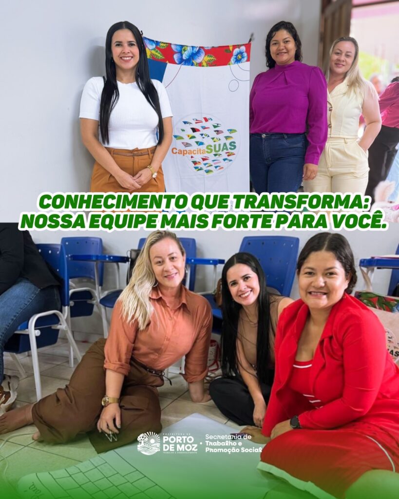 Nossas técnicas de referência da Atenção Básica da Secretaria de Assistência Social de Porto de Moz estão em Altamira para uma semana intensiva de aprendizado no CapacitaSUAS. Esse mergulho técnico é fundamental para fortalecer nossa rede e garantir que as práticas mais atuais da assistência social cheguem até o nosso município.