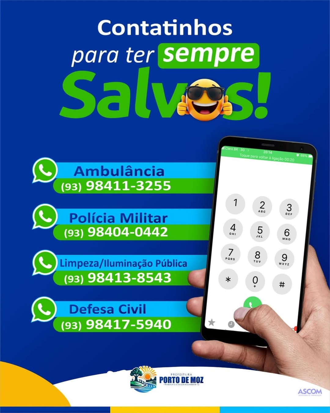 Para garantir mais segurança, agilidade e cuidado com a população, a Prefeitura de Porto de Moz disponibiliza contatos essenciais para atendimentos de emergência e serviços públicos.