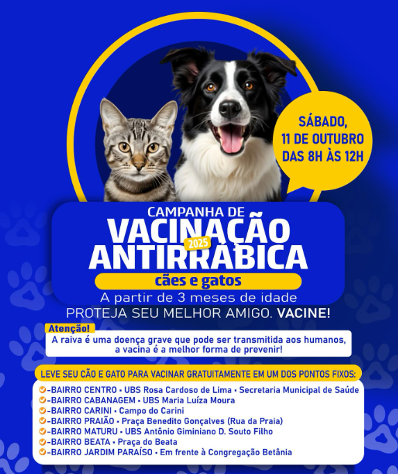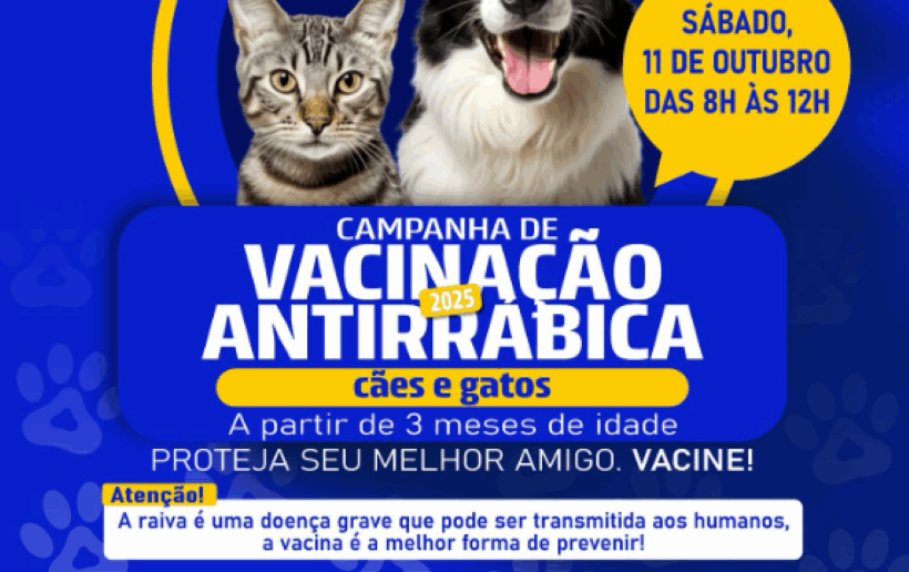Neste sábado, participe da Campanha de Vacinação Antirrábica 2025.