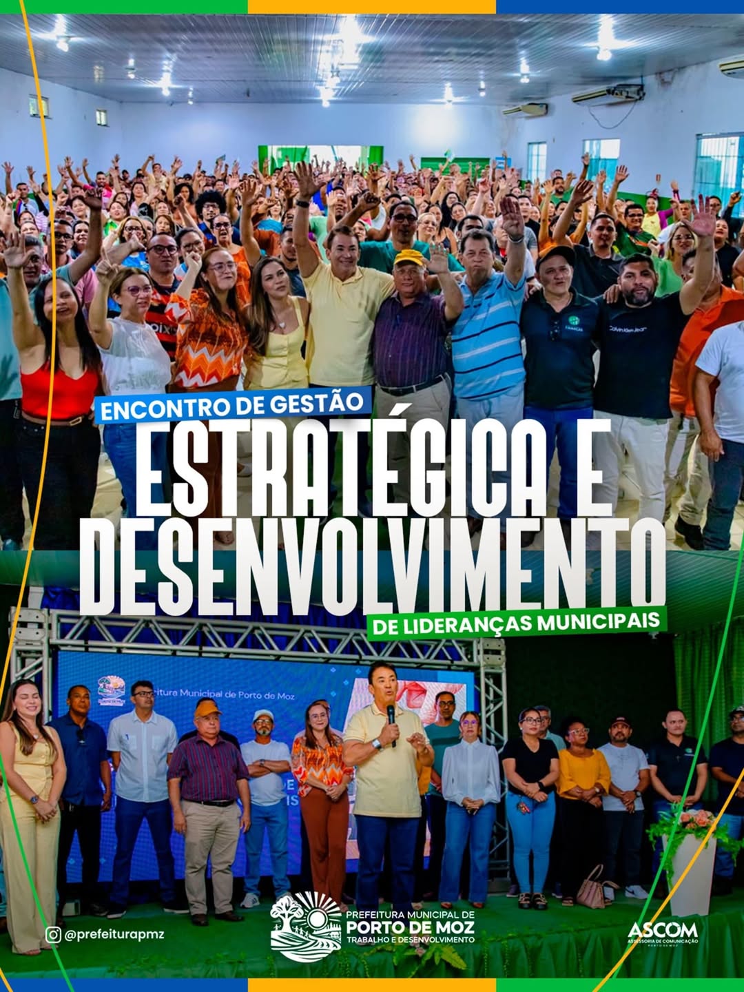 A Prefeitura Municipal de Porto de Moz realizou o Encontro de Gestão Estratégica e Desenvolvimento de Lideranças Municipais, envolvendo todas as secretarias e setores da gestão. O encontro teve como objetivo alinhar diretrizes, avaliar ações e definir metas que irão nortear o trabalho da gestão, fortalecendo a integração entre as equipes, aprimorando a tomada de decisões e garantindo uma gestão mais eficiente, organizada e comprometida com o desenvolvimento do município e o bem-estar da população.