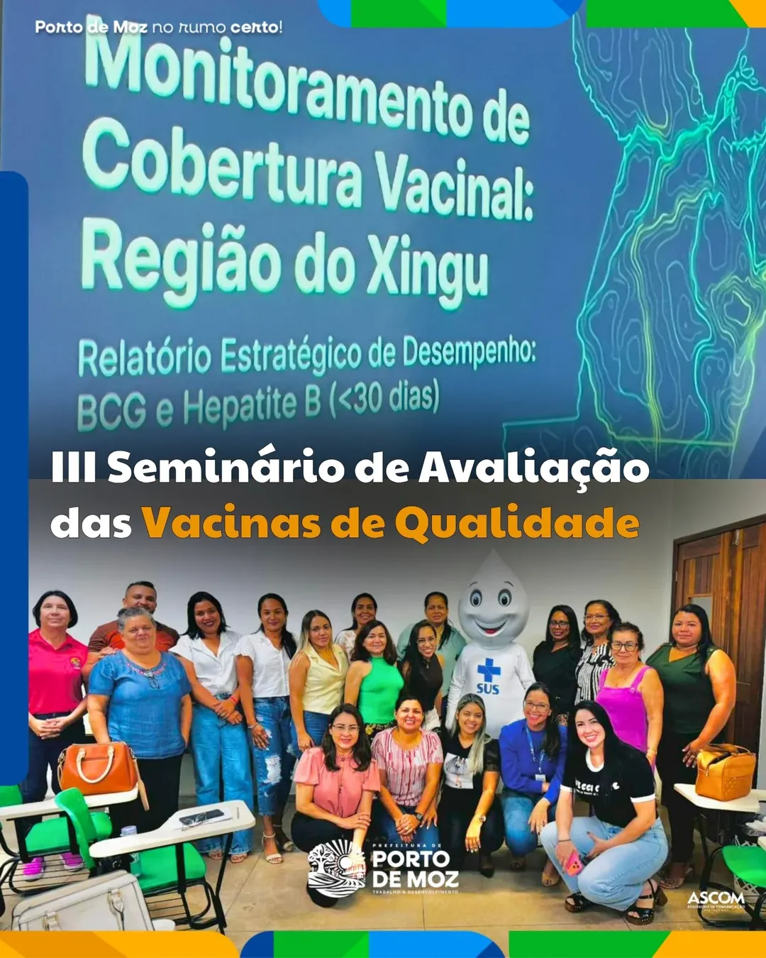 A Prefeitura de Porto de Moz, por meio da Secretaria Municipal de Saúde, segue investindo na qualificação contínua de seus profissionais. Técnicos do setor de Imunização participaram do III Seminário de Avaliação das Vacinas de Qualidade, realizado em Altamira (PA), promovido pela SESPA.