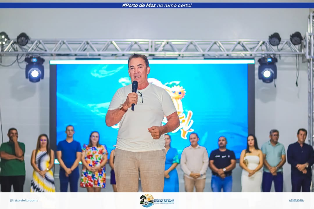 A Prefeitura de Porto de Moz realizou, neste sábado (05/07), o lançamento oficial do FestSol 2025, em uma grande Noite Cultural no auditório da Escola Bosque. O evento marcou o início da contagem regressiva para a 26ª edição do maior festival de verão do Xingu, que será realizado na Praia da Chácara, com uma programação repleta de cultura, esporte, turismo e lazer. Estiveram presentes o prefeito Rivaldo Campos, a primeira-dama e secretária da SEMUTS, Helô Campos, além de vereadores, secretários municipais e demais autoridades locais. Na ocasião, foi apresentada a Comissão Organizadora do FestSol, presidida pelo secretário de Esporte e Turismo, George Willame, acompanhado da equipe responsável pela construção e execução do evento. O público prestigiou apresentações dos grupos Rio Xingu e Rio Amazonas, atletas do Porto Contest, os candidatos ao título de Garoto e Garota FestSol, além do lançamento do vídeo oficial do festival.