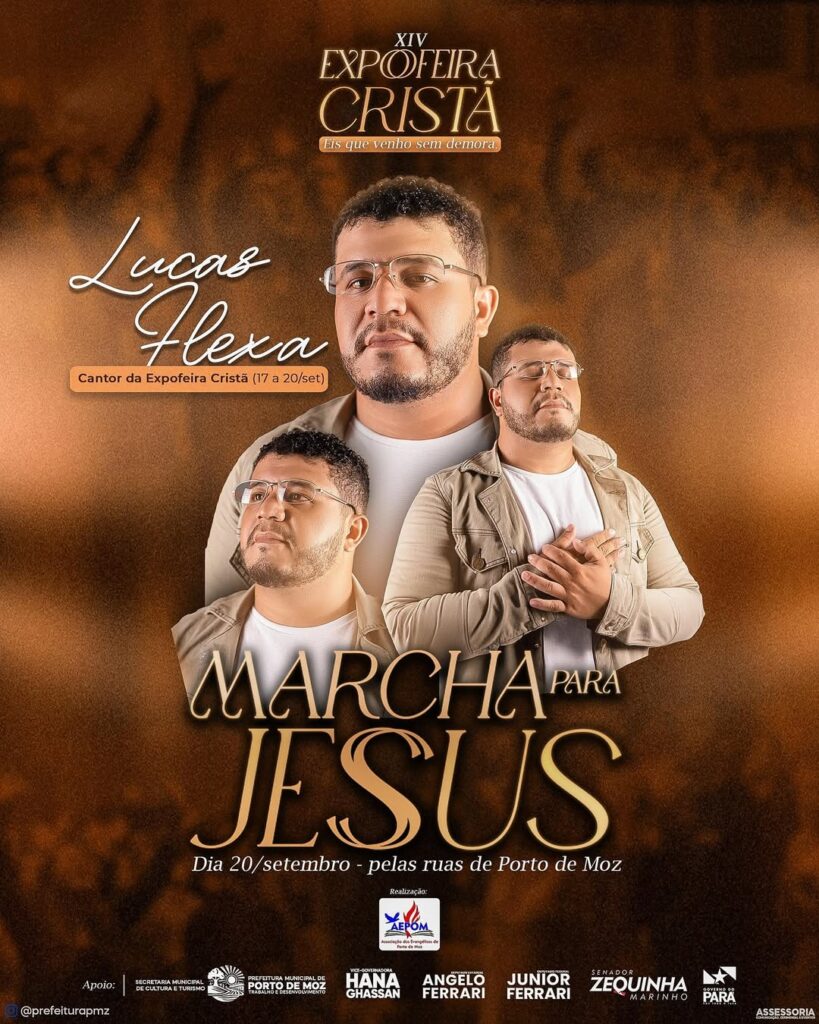 E tem mais: Durante a XIV Expofeira Cristã 17 à 20 de Setembro, o cantor Lucas Flexa vai nos conduzir com muita emoção e músicas que tocam o coração.