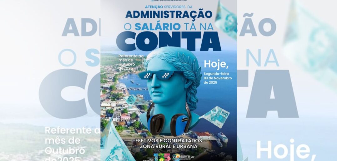 A Prefeitura de Porto de Moz informa que o pagamento referente a outubro de 2025 já está disponível para os servidores da Administração efetivos e contratados, da zona urbana e rural.