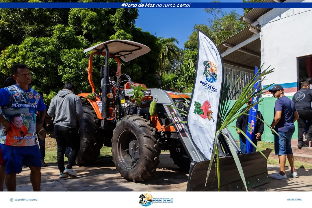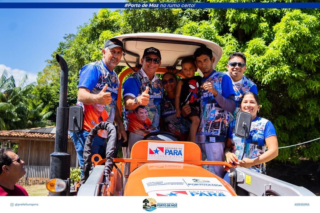 Neste domingo (06/07), a Prefeitura de Porto de Moz realizou, na comunidade Cariá, a entrega de um trator agrícola Budny 7540SL. O equipamento é resultado de uma importante parceria com o programa Pará Rural, do Governo do Estado, com apoio do Governador Helder Barbalho, da Vice-Governadora Hana Ghassan, do Deputado Federal Júnior Ferrari e do Deputado Estadual Ângelo Ferrari. Estiveram presentes o prefeito Rivaldo Campos, a primeira-dama e secretária da SEMUTS, Helô Campos, vereadores, secretários municipais e lideranças locais. A comunidade recepcionou a comitiva do governo com um delicioso almoço, reforçando o espírito de união e valorização do trabalho rural. Mais um passo firme no fortalecimento da produção rural e na valorização de quem vive e trabalha no campo!