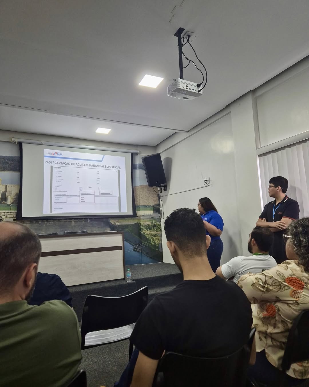 Durante a programação, a equipe participou de capacitação sobre o Sistema Estadual de Recursos Hídricos, com foco nos procedimentos técnicos para emissão de outorga de água, importante instrumento para a gestão hídrica municipal.
