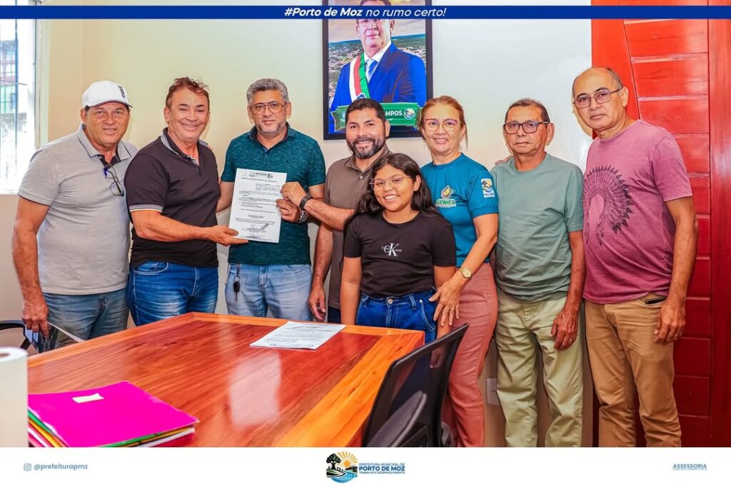 A Prefeitura Municipal de Porto de Moz oficializou, nesta quarta-feira (09/07), a posse do novo Secretário de Cultura, George Willame. O momento marca uma nova etapa no fortalecimento das políticas culturais do município. A solenidade contou com a presença do prefeito Rivaldo Campos, que destacou a importância da cultura como ferramenta de transformação social. Também participaram o secretário de Administração, Ademir Gama; a secretária de Educação, Dilcilene Campos; o novo secretário de Esportes Eduardo Fonseca; o Assessor Técnico Jorge Rezende; e o Sr. Dedeca. Com a nova gestão à frente da Secretaria de Cultura, a expectativa é de avanços significativos nas ações culturais, valorização dos artistas e fortalecimento das tradições de Porto de Moz.