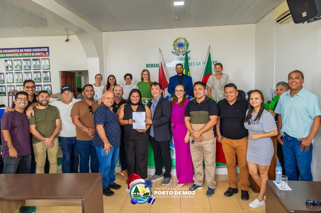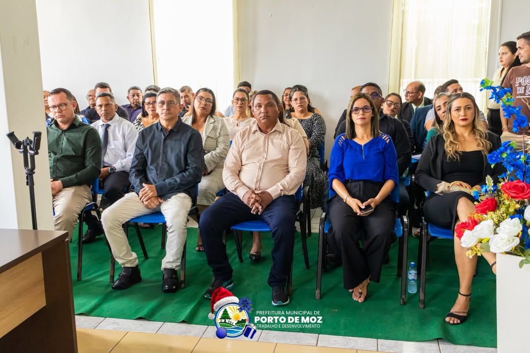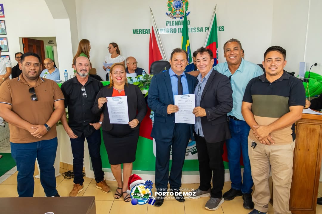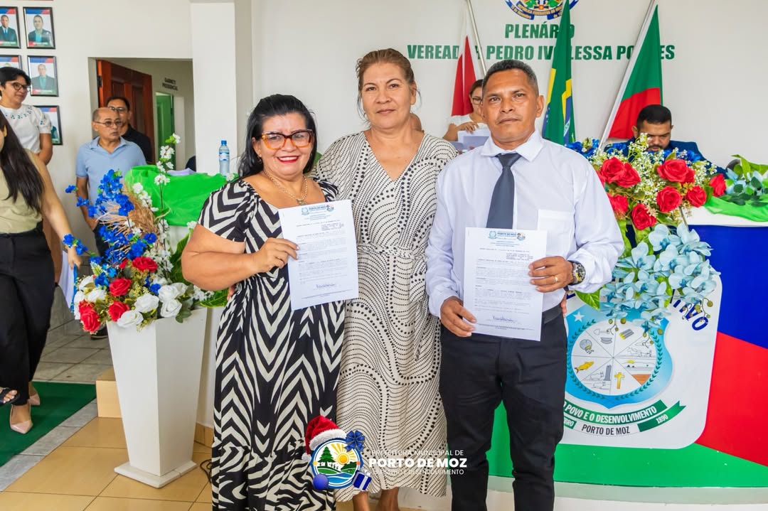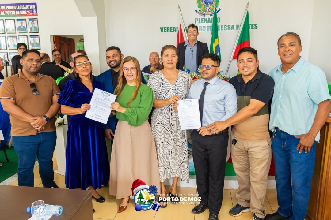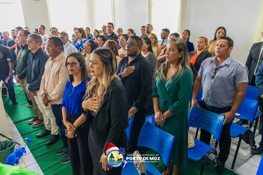 A Prefeitura de Porto de Moz realizou, nesta segunda-feira (15), na Câmara Municipal de Vereadores, a solenidade de posse dos diretores das escolas da rede municipal de ensino. O evento contou com a presença do prefeito Rivaldo Campos, da equipe de governo e de profissionais da educação, reafirmando o compromisso da gestão com o fortalecimento da educação pública, a valorização dos gestores escolares e a consolidação da gestão democrática.