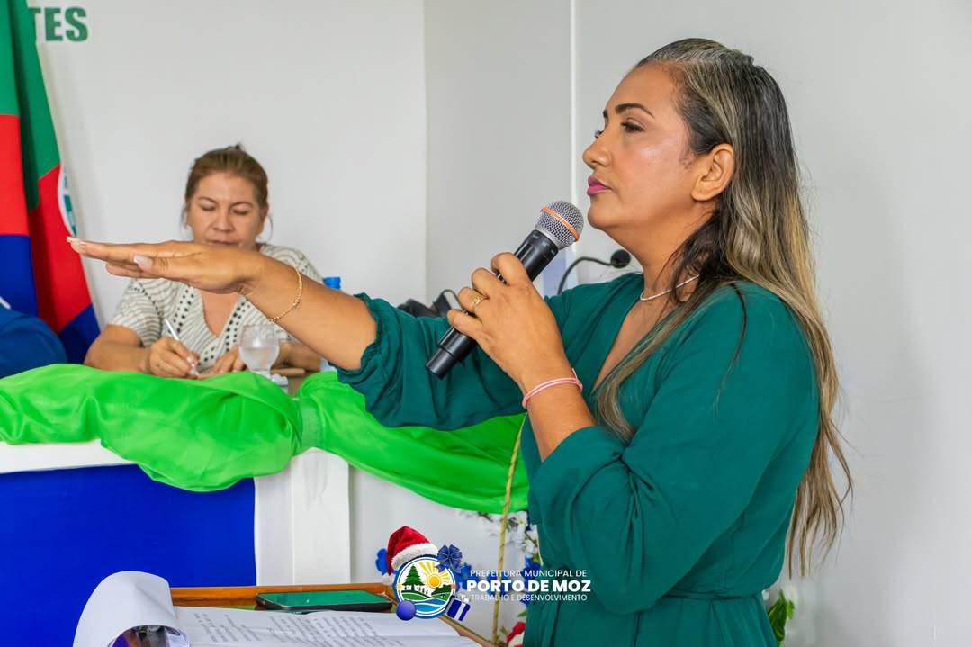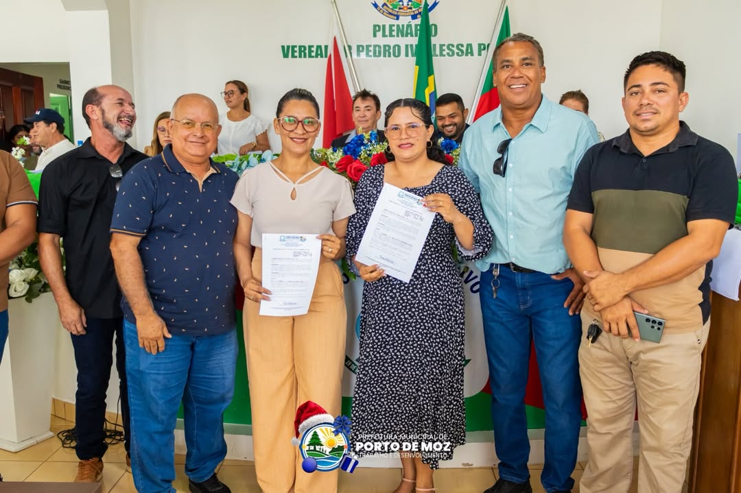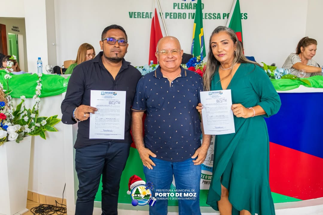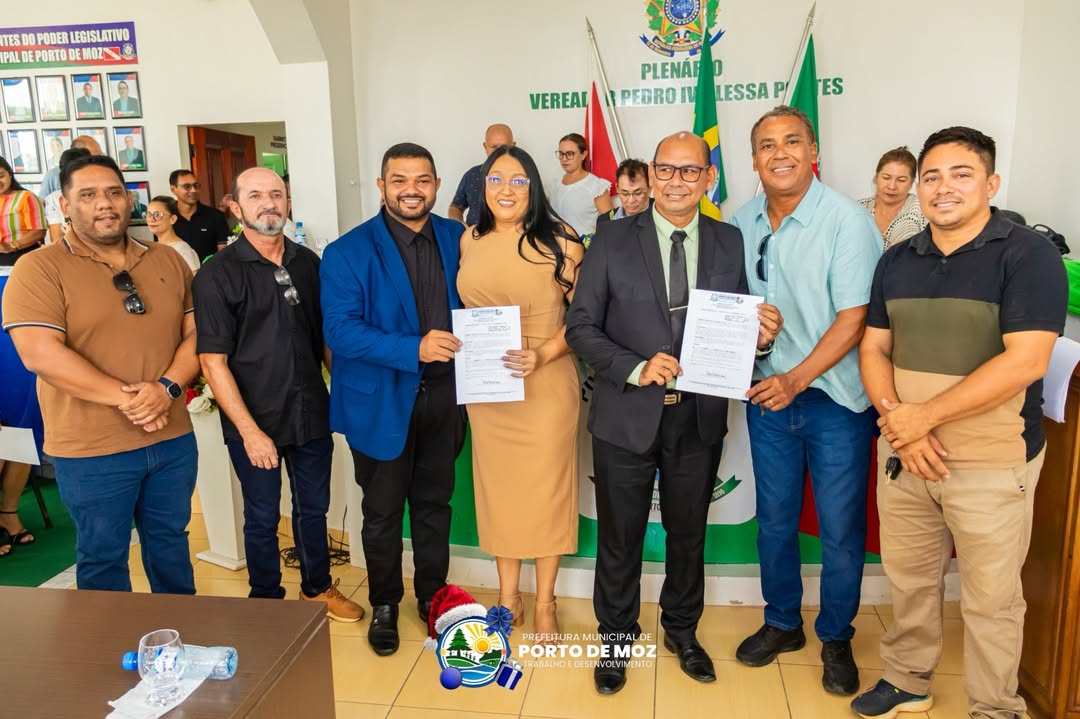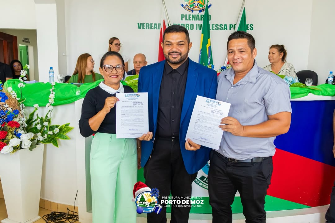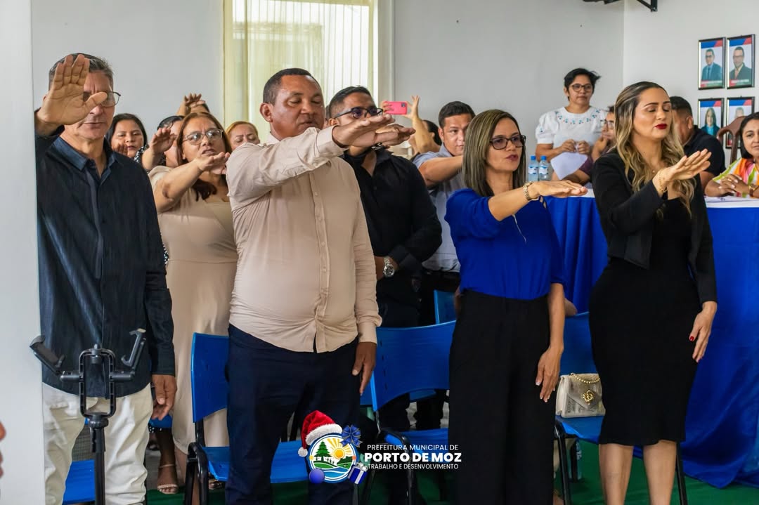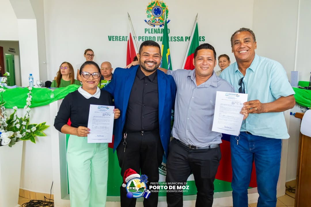 A Prefeitura de Porto de Moz realizou, nesta segunda-feira (15), na Câmara Municipal de Vereadores, a solenidade de posse dos diretores das escolas da rede municipal de ensino. O evento contou com a presença do prefeito Rivaldo Campos, da equipe de governo e de profissionais da educação, reafirmando o compromisso da gestão com o fortalecimento da educação pública, a valorização dos gestores escolares e a consolidação da gestão democrática.