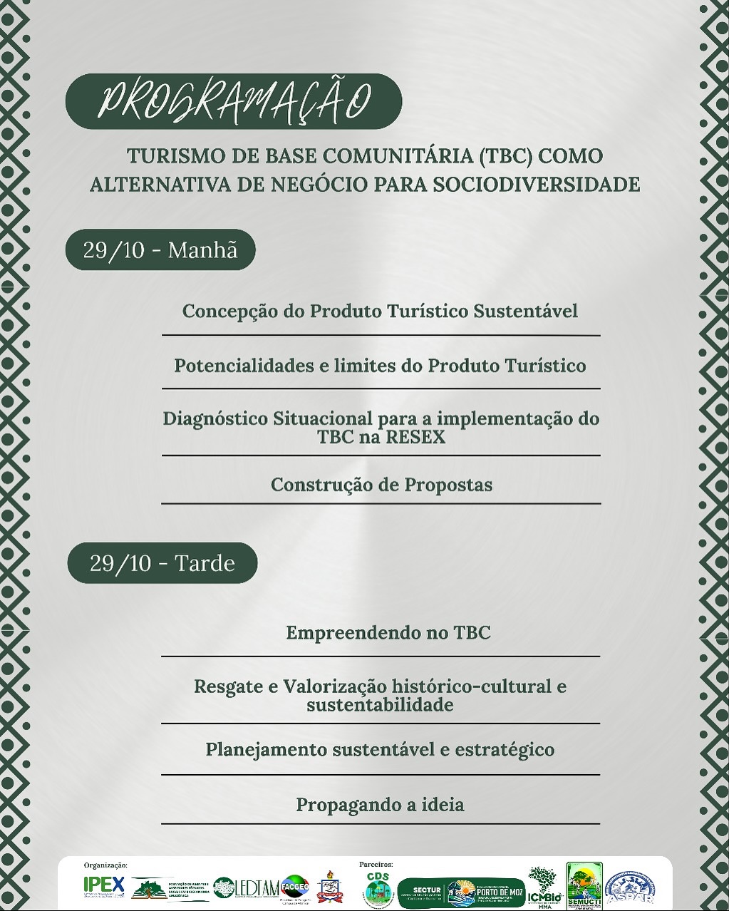 O evento tem como objetivo fortalecer o turismo sustentável e valorizador das comunidades locais, promovendo práticas que unem empreendedorismo, cultura e conservação ambiental.