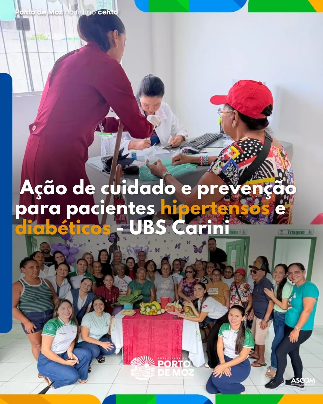 A Prefeitura Municipal de Porto de Moz, por meio da Secretaria Municipal de Saúde, realizou no dia 19 de março, na UBS Carini, uma importante ação voltada aos pacientes com hipertensão arterial e diabetes, reforçando o compromisso com o cuidado, a orientação e o acompanhamento em saúde.