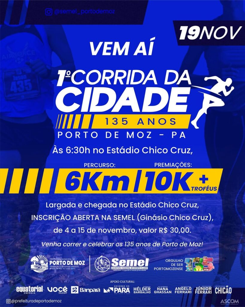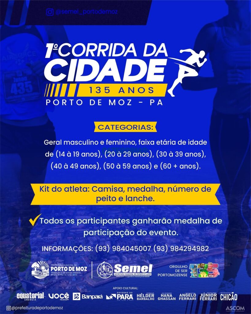 Em comemoração aos 135 anos de Porto de Moz, a Prefeitura Municipal, por meio da SEMEL, convida você para participar desse grande evento esportivo!