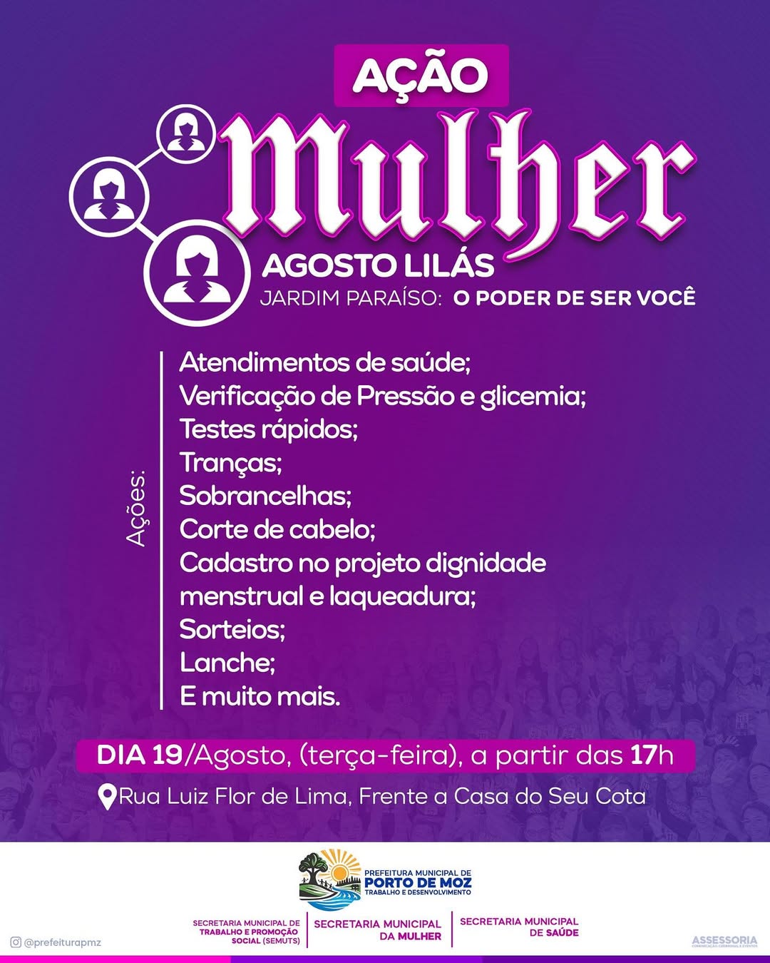 Mais uma ação do Governo Trabalho e Desenvolvimento, através das secretarias da Mulher, Semuts e Saúde.